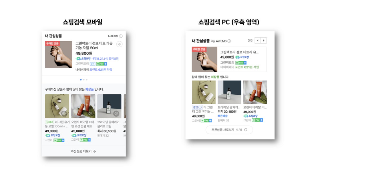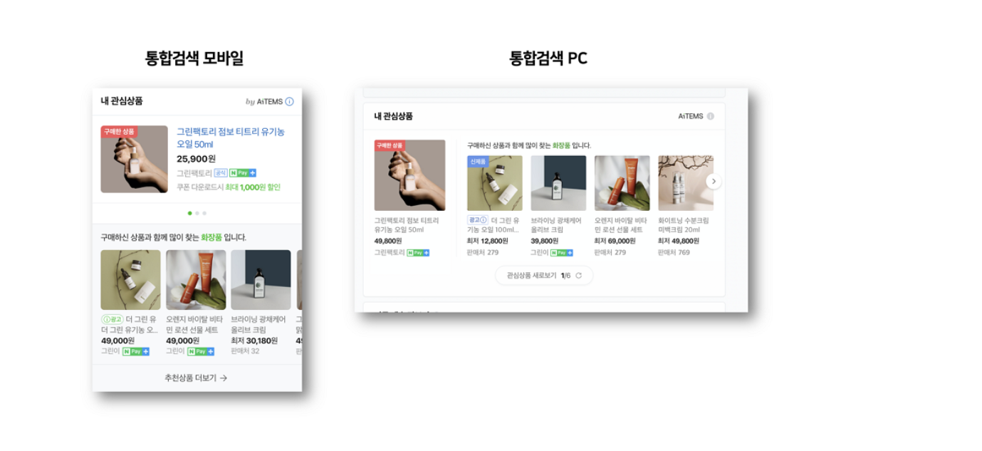 네이버 통합검색 및 네이버 쇼핑검색에 노출되는 ‘내관심상품’ 영역에 쇼핑검색광고가 1개씩 추가되며,