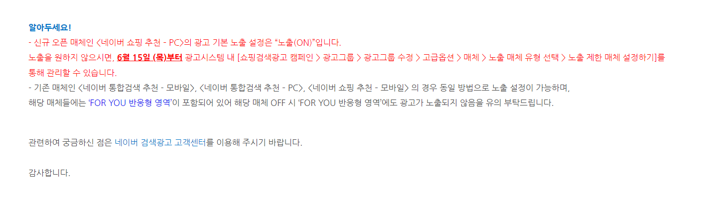 광고주 여러분께서는 아래 내용을 확인하시고 광고 운영에 참고하시기 바랍니다.